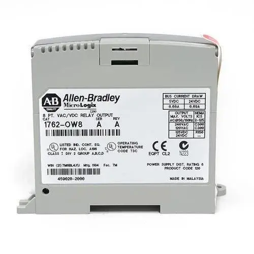 Allen-Bradley 1762-OW8 является релейным выходным модулем, предназначенным для использования с контроллерами серии MicroLogix, включая MicroLogix 1100, 1200 и 1400. Этот модуль расширяет возможности контроллера, обеспечивая 8 точек выхода с AC/DC релейными контактами.