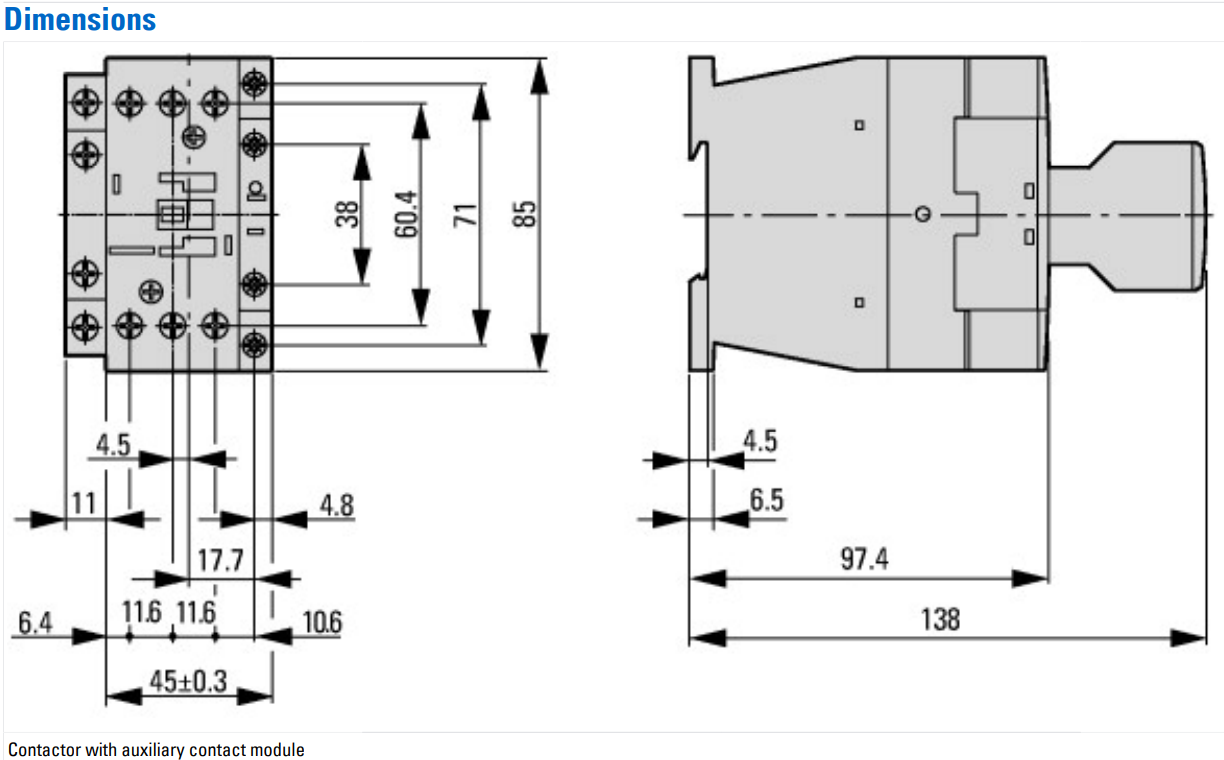 - Высокая коммутационная способность для двигателей до 7,5 кВт.