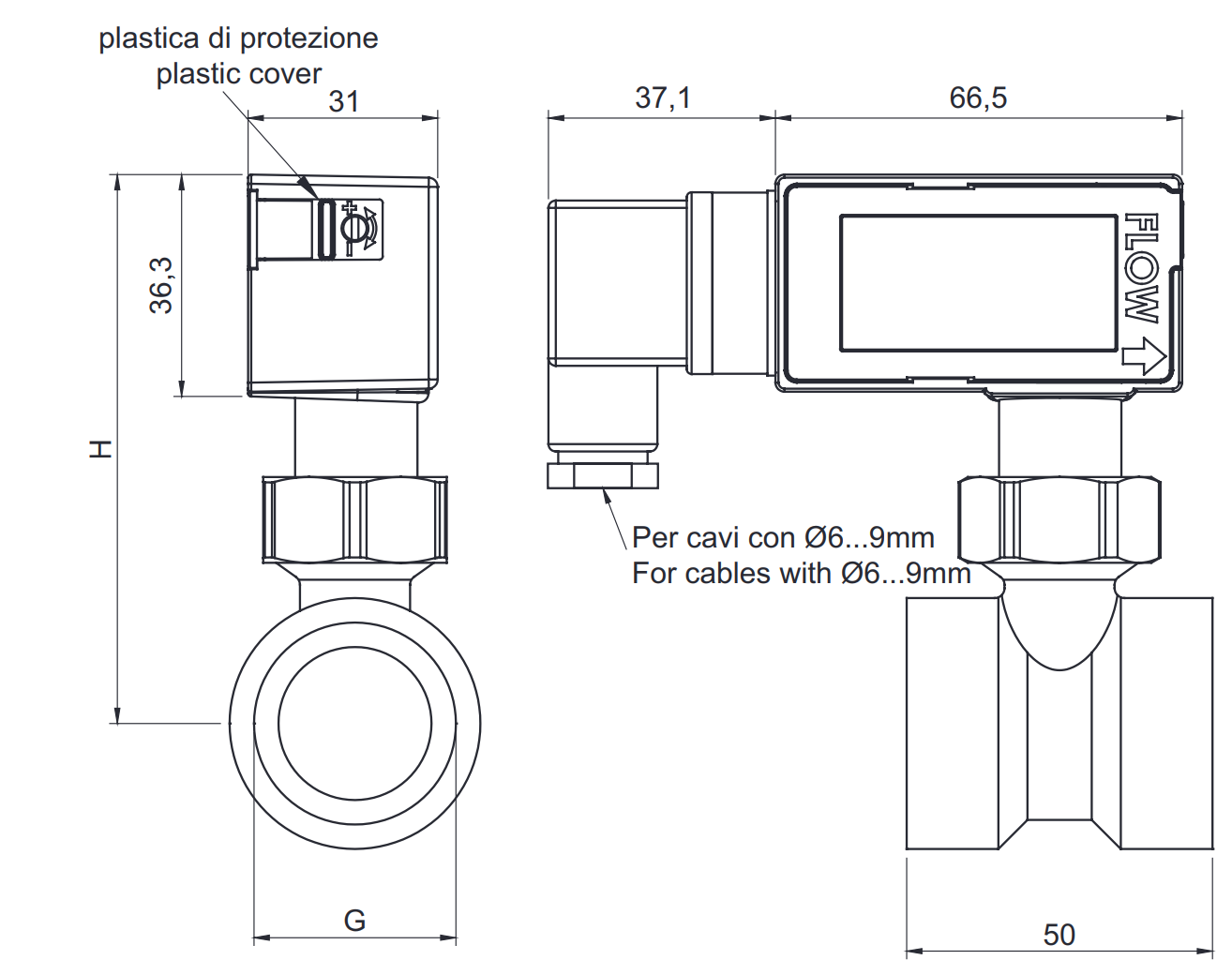 Установка горизонтальная или вертикальная (поток снизу вверх), минимальный расход срабатывания ~0,5-1 л/мин (точные значения зависят от вязкости), визуальный индикатор положения механизма через прозрачное окно. Монтаж без пайки, простая калибровка чувствительности винтом. Габариты компактные ~100×60×50 мм, вес около 0,8 кг, питание не требуется - пассивный датчик с электрическим выходом. В котельных защищает насосы от сухого хода, в холодильных системах - компрессоры от отсутствия хладагента, в промышленности - от засоров труб. Соответствует EAC сертификату для РФ/ЕАЭС, выдерживает вибрации и конденсат. Серия DB**MI включает модели DB10MI–DB50MI для разных диаметров, DB10MI - базовая для малых потоков.