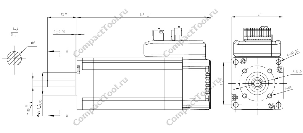 - Компактные габариты формата NEMA 23 и сравнительно малый вес.