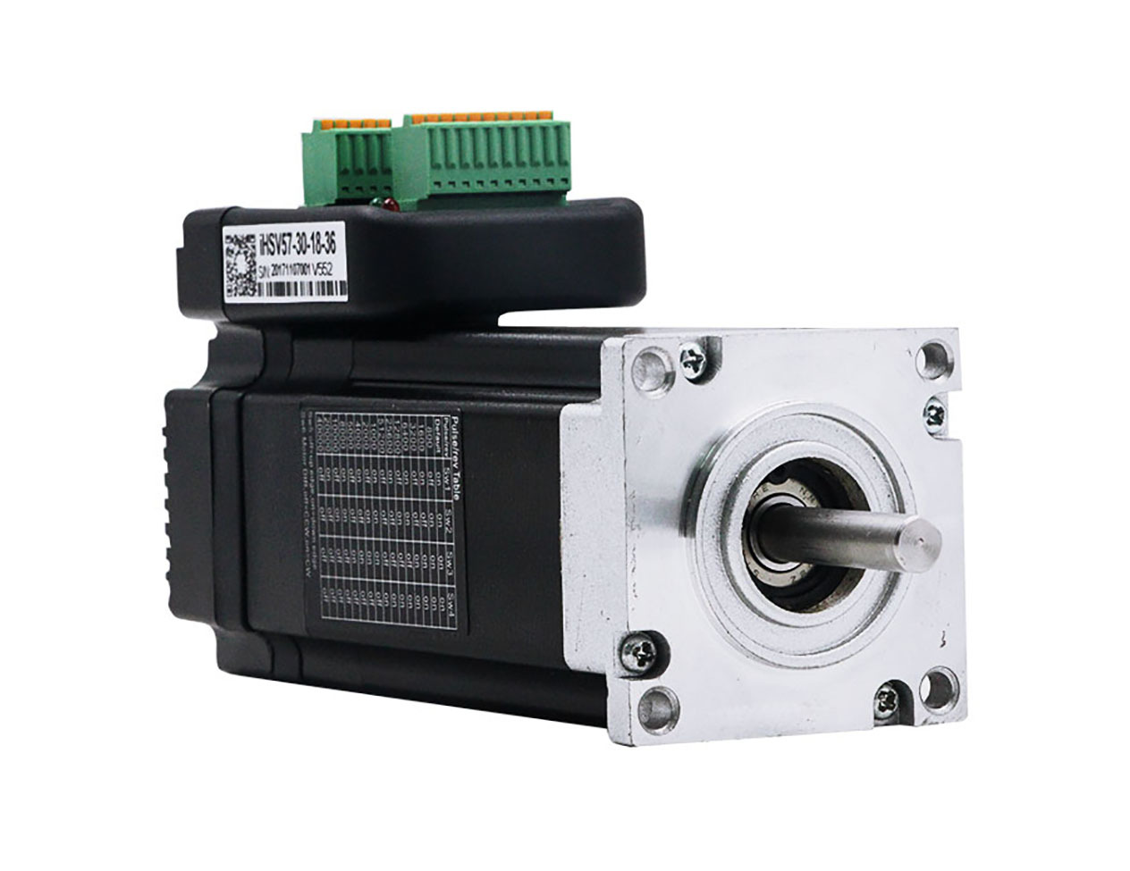 Интегрированный сервопривод iHSV57-30-18-36 включает высокоскоростной бесшумный электродвигатель, оптичский энкодер с разрешением 1000 линий для мониторинга углового положения вала и встроенный драйвер с несколькими режимами обратной связи (позиционный, скоростной и токовый контуры). Это позволяет достигать плавного и точного движения, минимизируя вибрации и потери мощности.