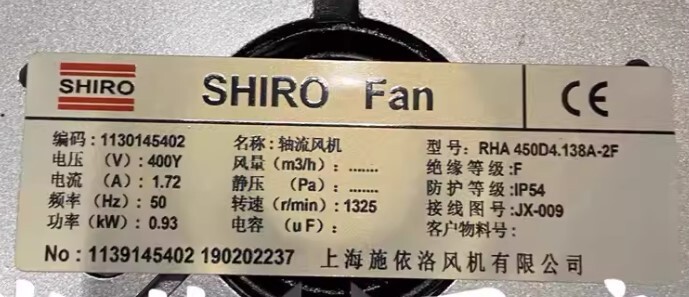 Вентилятор Shiro RHA450D4.138B-2F работает от напряжения 230 В с током от 0,79 до 1,07 А в зависимости от частоты (50-60 Гц), мощность - от 180 до 245 Вт. Скорость вращения колеблется в диапазоне 1300–1350 об/мин, обеспечивая стабильный и эффективный воздушный поток для охлаждения электродвигателей, инверторов и других промышленных узлов оборудования.