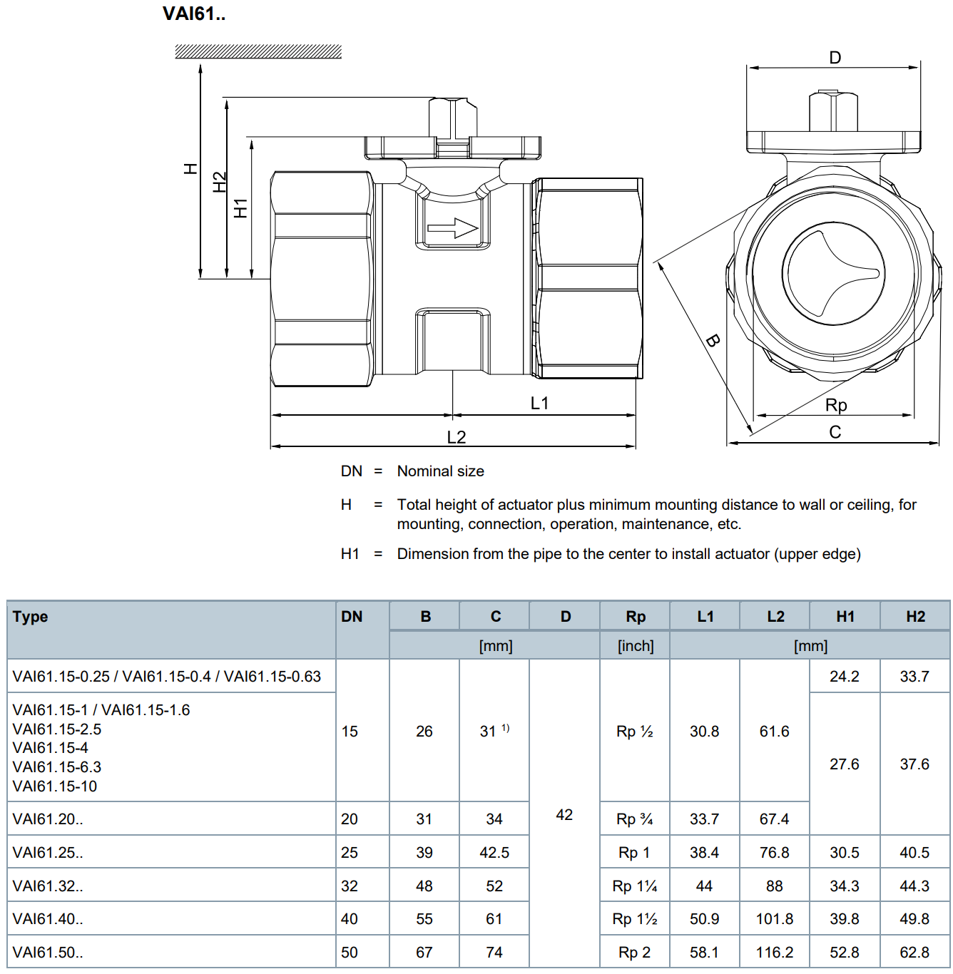 Siemens VAI61.20-4 представляет собой двухходовой шаровой клапан с внутренней резьбой, рассчитанный на давление PN40 и номинальный диаметр DN20. Используется в системах отопления, вентиляции и кондиционирования HVAC для точного регулирования и перекрытия потоков в замкнутых контурах.