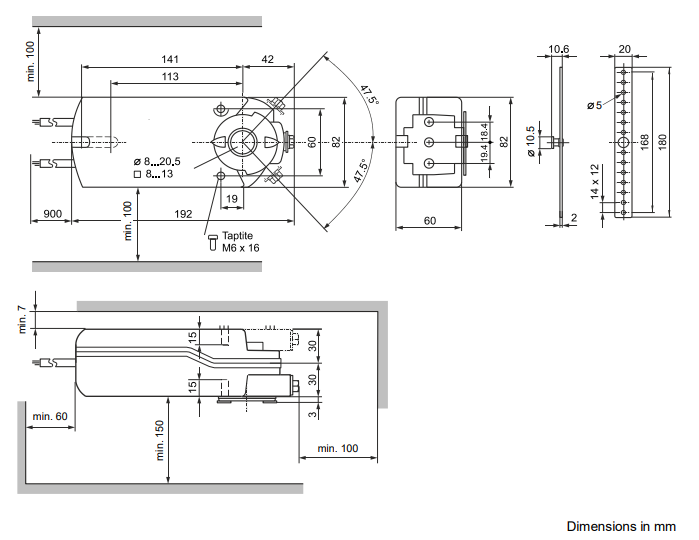 - Роторный привод с крутящим моментом 20 Нм, подходящий для управления средними по размеру вентиляционными заслонками.