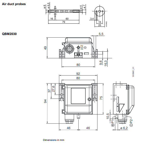 Конструкция корпуса QBM2030-5 предусматривает простоту монтажа с помощью встроенных крепежных кронштейнов и возможность установки на стену, панель или воздуховод. Корпус обладает степенью защиты IP42, обеспечивая достаточную пыле- и влагозащиту для внутренних помещений. Питание осуществляется от AC 24 В ±15% или DC 13.5…33 В, что позволяет подключать датчик практически к любым системам автоматизации зданий.