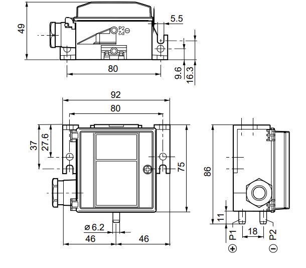При установке рекомендуется направление штуцеров вниз во избежание накопления конденсата внутри камеры измерения. В комплект входят две пластиковые трубки длиной 2 м, штуцеры и крепеж. Питание - от источников постоянного 13.5-33 В или переменного тока (24 В, 50/60 Гц). Датчик не требует калибровки в процессе эксплуатации и отличается долговременной стабильностью по стандарту DIN IEC 60770 ±1% FS в год.