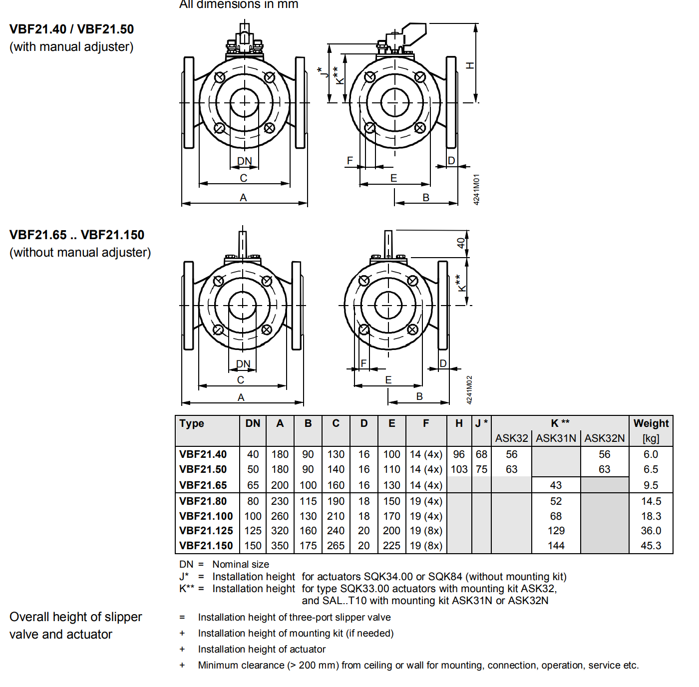 Клапан оснащен рукояткой для ручной настройки для DN40 и DN50, клапаны больших диаметров комплектуются электромоторными приводами Siemens типов SQK… и SAL..T10, что позволяет интегрировать устройство в автоматизированные системы управления. Клапан не требует обслуживания и может устанавливаться в различных положениях, за исключением шток вниз.