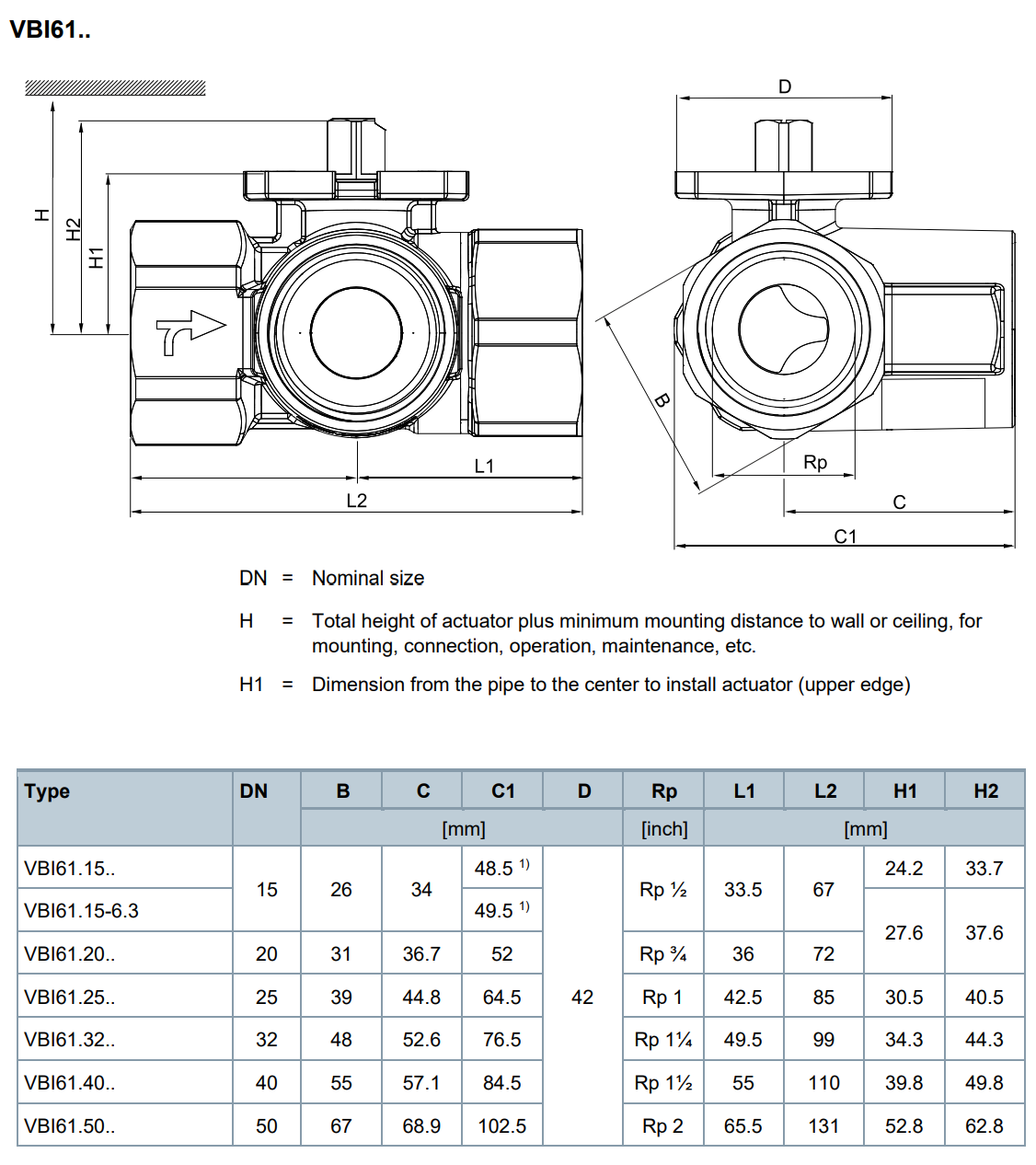 Siemens VBI61.40-25 представляет собой регулирующий трехходовой шаровой клапан с внутренней резьбой Rp 1½, рассчитанный на давление PN40 и номинальный диаметр DN40. Предназначен для использования в системах отопления, вентиляции и кондиционирования воздуха для точного управления потоками жидкости в замкнутых инженерных контурах.