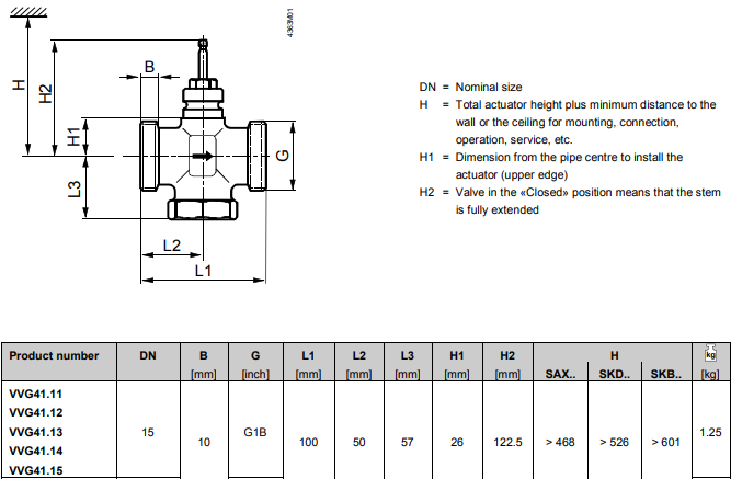 Siemens VVG41.15 представляет собой двухходовой седельный регулирующий клапан с внешней резьбой DN15, kvs ≈4 м³/ч для систем отопления, вентиляции и кондиционирования, используемый совместно с приводами для регулирования потока рабочей среды.