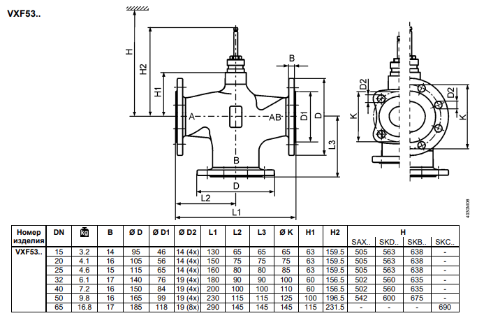 Siemens VXF53.25-10 представляет собой трехходовой седельный фланцевый клапан, предназначенный для применения в системах отопления, вентиляции и кондиционирования воздуха HVAC. Он используется для регулирования, смешения и распределения потоков теплоносителя в закрытых или открытых гидравлических контурах, обеспечивая надежное управление температурой и давлением.