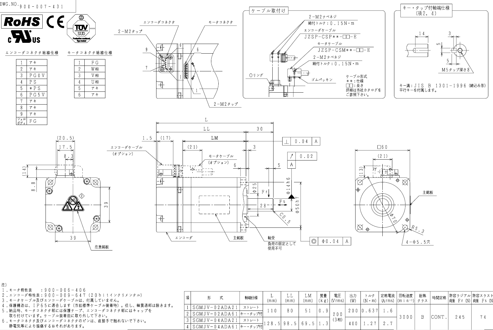 SGMJV‑02ADA21 — мощный и компактный серводвигатель Sigma‑5 на 200 Вт, с высоким пиковым моментом, прецизионным 20‑битным энкодером и отличной динамикой, подходящий для автоматической сборки, станков и робототехники.