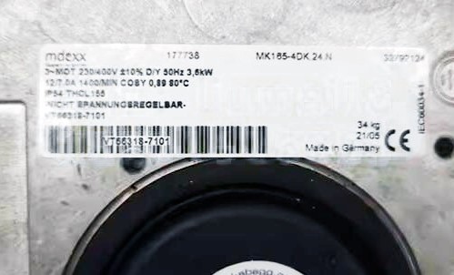 Модель MK165-4DK.24.N оснащена 4-полюсным двигателем с номинальной мощностью 3,6 кВт и рабочим напряжением 230/400 В при частоте 50 Гц. Максимальный ток составляет 12/7 А, а скорость вращения - около 1400 об/мин. Конструкция двигателя включает высококачественные радиальные шариковые подшипники с специальной смазкой от Ziehl-Abegg, рассчитанные на весь срок службы, обеспечивая долговечность и минимальные вибрации при эксплуатации.